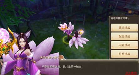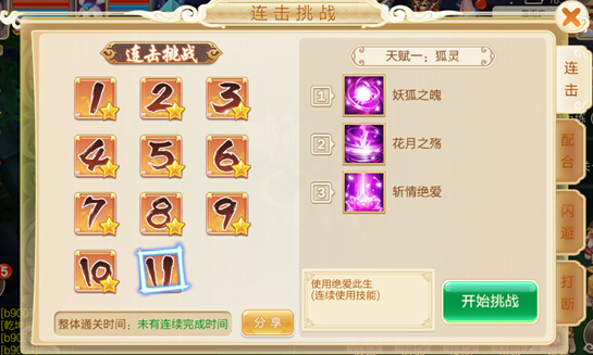 说明:门派师傅为了让每个弟子对本门功夫有更深层的理解,让大弟子细心指导每个人,几个门派大弟子合计了一下,联合推出了四大挑战与本派之间的配合等(连击、配合、闪避、打断)挑战,让众仙友了解自己与各门派的功夫。