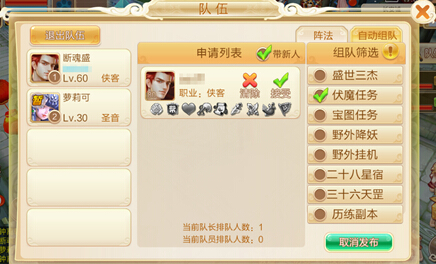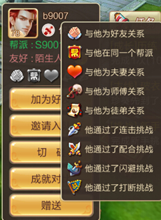 说明:关系图标可说明仙友与你是什么关系,能力图标说明仙友的挑战通过到了什么程度,程度越高说明越厉害。并且在申请组队的时候,也可以看到仙友的关系和能力图标,如果真的没什么感情也没什么能力,拒绝申请也是可以的。