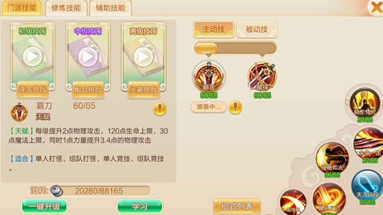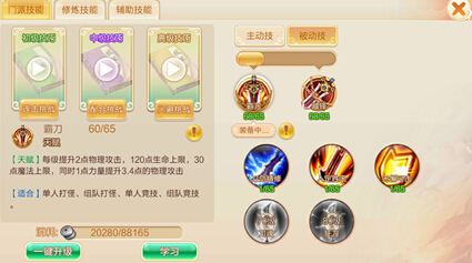 1.界面变为全屏,更好的让仙友了解技能,并且可直接前往挑战功能。主动技能和被动技能分开,更好的理解主动和被动技能都有哪些。