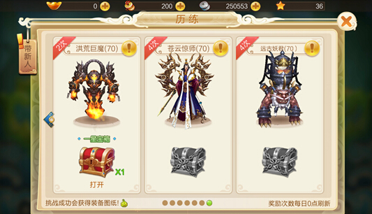 2)每天挑战次数调整为1次,奖励不变。即战胜1次可获得3张图纸!